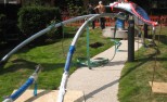 In order to realise this piece, artifice has been used to intrigue those who are puzzled by how it works. It will not be immediately clear how it can work, since the water travelling up and down from one end of the site to the other appears to defy gravity.